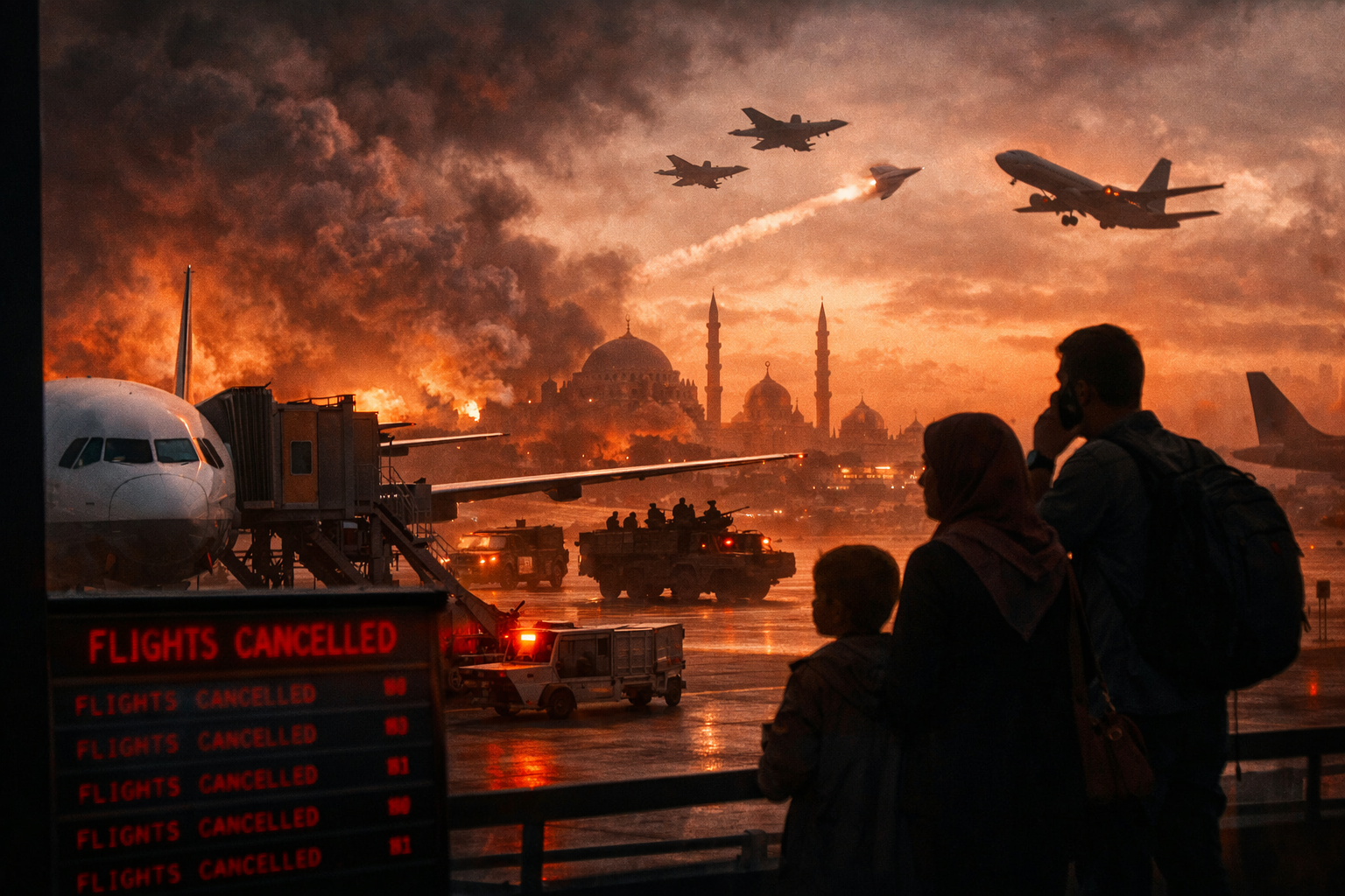 Istanbul Airport announced that multiple flights to Tehran had been canceled Friday night amid the mounting U.S. military buildup around Iran. Flights operated by Turkish Airlines and two Iranian carriers were scrubbed, with additional cancellations scheduled for Saturday. A Turkish Airlines flight to the northern Iranian city of Tabriz was also called off.