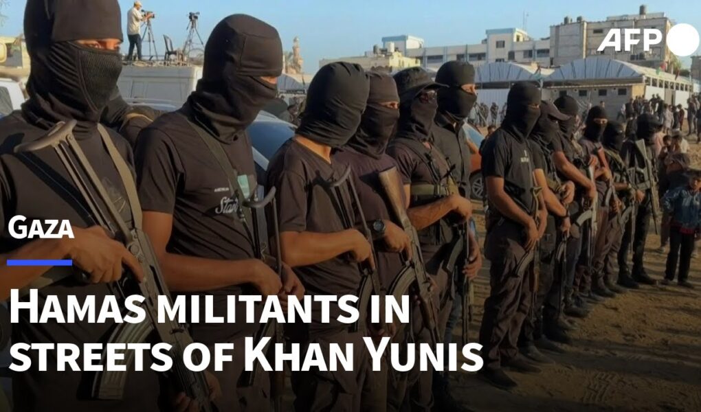 Hamas militants drive in the streets of Gaza’s southern city of Khan Yunis ahead of the expected Israel and Hamas … source