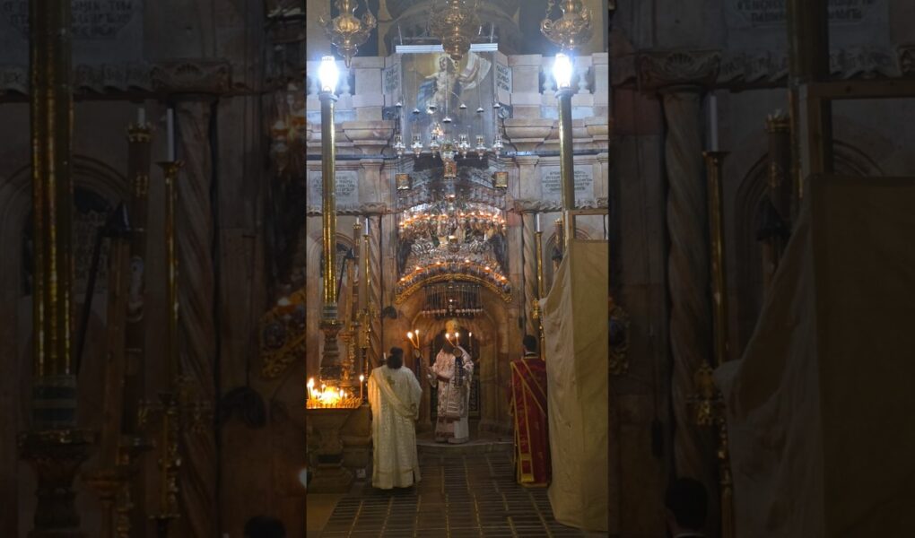 jerusalem #churchoftheholysepulchre #jesus #prayer Bishop Isidoros blessing the faithful in Church Slavonic and Greek in … source