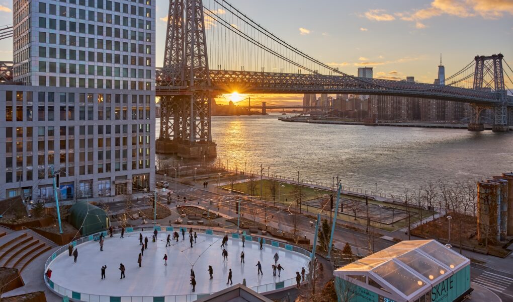After a successful debut last year, Williamsburg’s first waterfront ice skating rink at Domino Park will return this winter. Two Trees Management announced Monday that the 7,000-square-foot rink will open