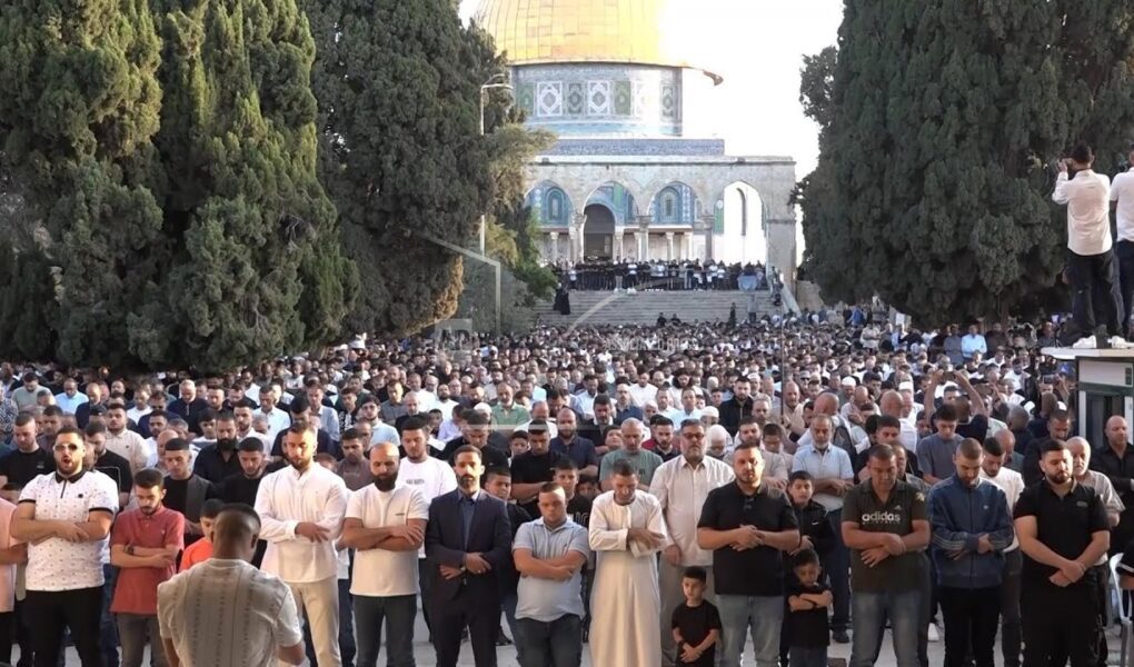 Worshippers gather for Eid prayers at the Al-Aqsa Mosque in Jerusalem