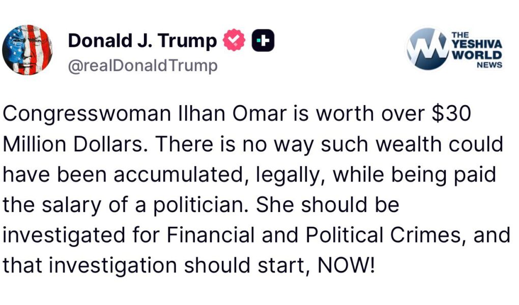 TRUMP: Congresswoman Ilhan Omar is worth over $30 million dollars. There is no way such wealth could have been accumulated, legally, while being paid the salary of a politician. She