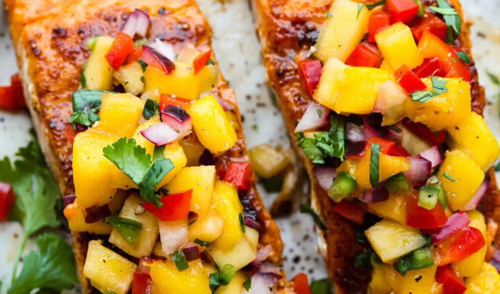 This website may contain affiliate links and advertising so that we can provide recipes to you. Read my disclosure policy. I’m obsessed with salmon, and this Mango Salsa Salmon might