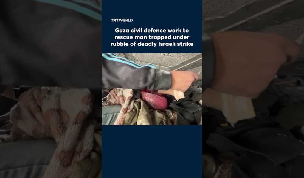 Gaza civil defence teams attempt to rescue a Palestinian man trapped under the rubble of a collapsed home, following an Israeli … source