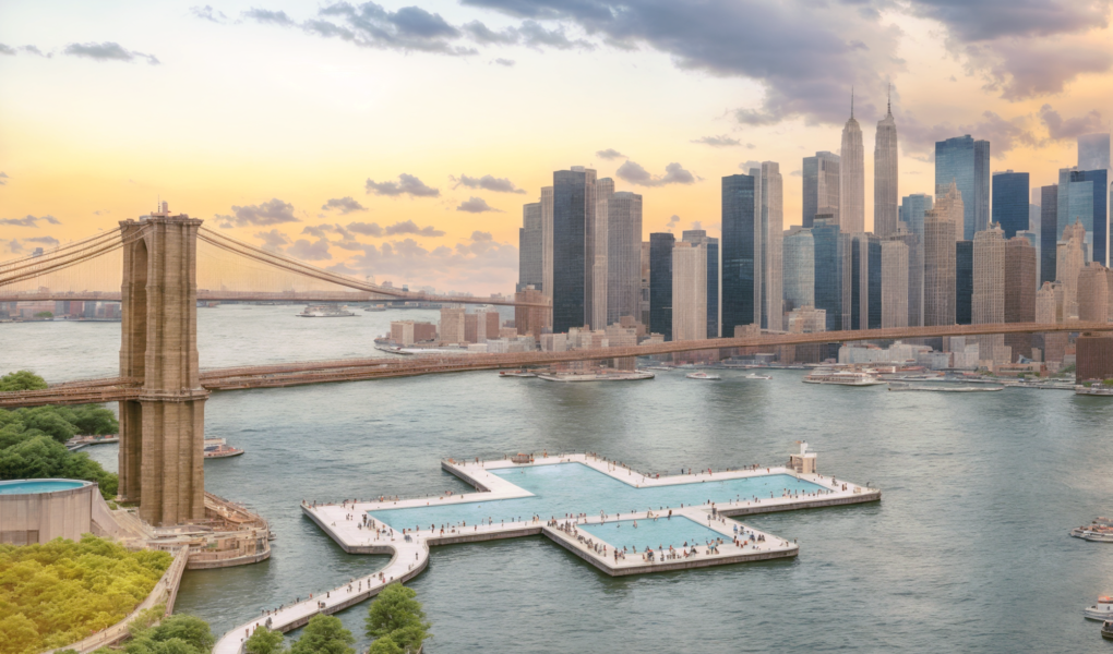 +POOL Rendering, 2024. Designed by Family New York & Playlab, Inc. Image by proto. New York City will test the waters of a self-filtering floating pool this summer. Gov. Kathy