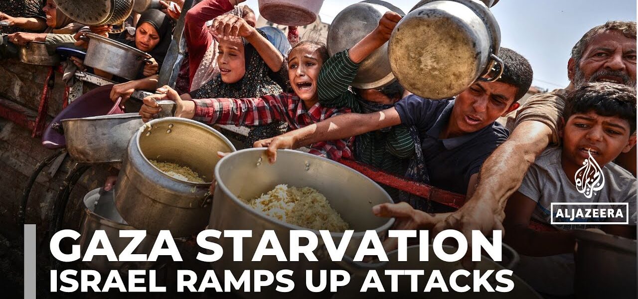 Displaced and desperate Palestinians are scrambling for scraps of food as they face bombardment from Israeli forces planning to … source