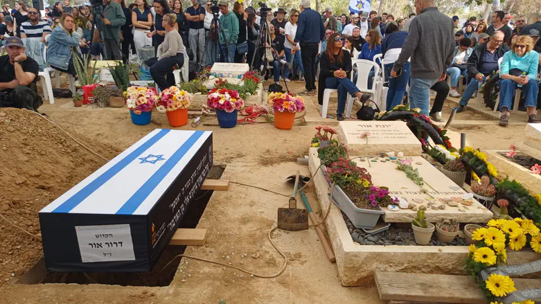 Dror was laid to rest beside his wife, Yonat, who was murdered on October 7 in the kibbutz. His sons Yahli and Noam, together with Dror’s brother Elad, recited Kaddish.