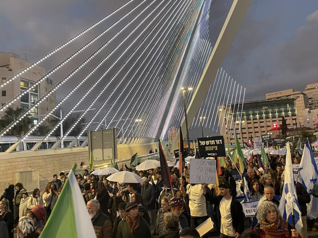 Thousands of Israelis marched from the Bridge of Strings at Jerusalem’s entrance to the Knesset on Thursday night to join a rally protesting a proposed law that would provide ultra-Orthodox Jews with a blanket exemption from army service. The protesters included young men and women on the cusp of conscription, reservists, and the families of those currently serving.
