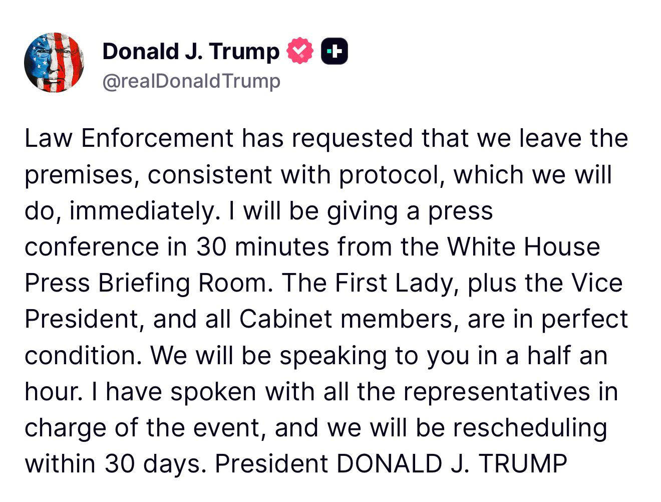 BREAKING: Trump Evacuated From White House Correspondents’ Dinner After Shooting; Suspect Dead